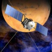 | Obr. 1: Evropská sonda Mars Express přilétá s připojeným modulem Beagle 2 k planetě Mars [1]. |